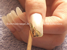 Take up with the tweezers the beaten gold and put it cross on the front nail surface.