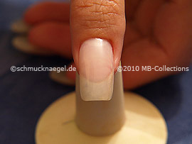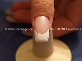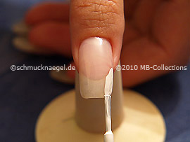 Paint the front part of the fingernail with the nail lacquer in the colour white.