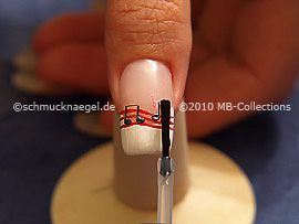 Begin at the left edge of the fingernail and draw with the nail art liner in the colour red a swung line to the right edge of the fingernail.