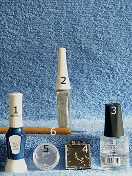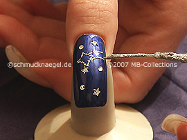 Draw with the nail art liner in the colour silver-glitter a big star on the blue nail lacquer.