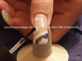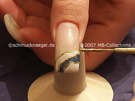 Now paint with the nail art liner in the colour gold-glitter a line on the transitions of the white nail lacquer.