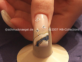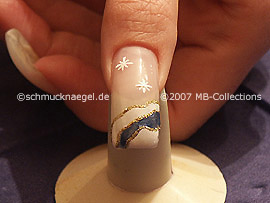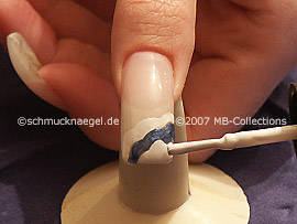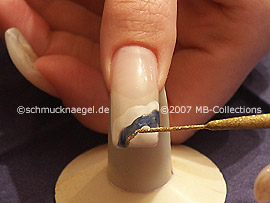Use the nail art pen in the colour blue-gray. Draw below the white line a further wavy line.