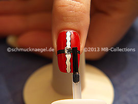 Pinte con el nail art liner de color negro los bordes del color blanco. Después más adelante se dibuja una cinta para el cinturón.