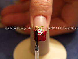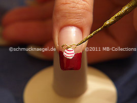Dibuje ahora por encima del punto blanco con el nail art liner de color oro-glitter un lazo.