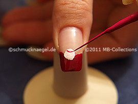 Utilice el esmalte en rojo oscuro. Pinte con el pincel una línea desde el borde izquierdo hacia el lado derecho de la uña.