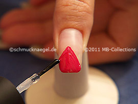 Dibuje con el esmalte de color fucsia dos líneas diagonales sobre la uña.
