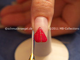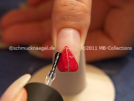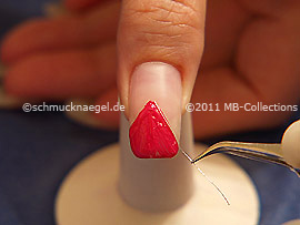 Coja con la pinzeta una cintilla en plata, coloque la cintilla sobre el esmalte transparente húmedo. Como en la ilustración.