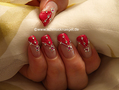 Paso 5: Esmalte transparente, spot-swirl y las piedras strass en cristal y rojo