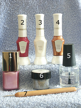 Paso 2: Necesitan el nail art pen de colores lavanda y blanco