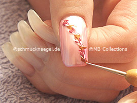 Utilice el nail art pen en oro. Dibuje otros cuatro puntos en medio de los anteriores.