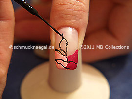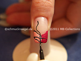 Dibuje con el nail art liner en negro varias líneas ondeadas, aproximadamente como en las fotografías.