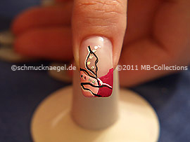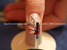 Utilice el esmalte de color rosa. Pinte con el pincel una línea con curva desde el lado izquierdo hacia la punta de la uña.