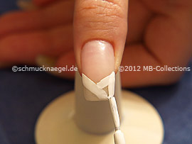 Pinte ahora con el esmalte en blanco la superficie debajo de la línea.