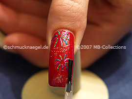 Pinte ahora otras tres líneas con el nail art liner en azul-glitter.