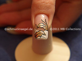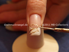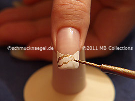 Dibuje ahora en el lado derecho, con el nail art liner en oro otra hoja.