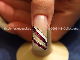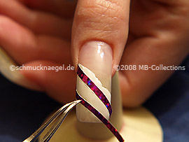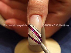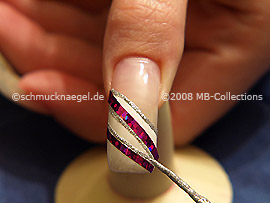 Dibuje ahora debajo del primer holograma adhesivo una línea con el nail art liner en plata-glitter.