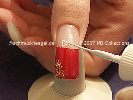 Dibuje con el esmalte con oro-glitter, diagonal la esquina izquierda de la uña.