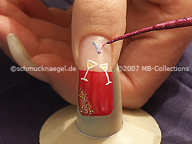 Dibuje ahora otra línea en el lado derecho, con el nail art liner en oro-glitter.