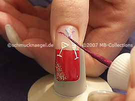 Pinte desde la línea anterior otra línea paralela en el lado derecho con el nail art liner en fucsia-glitter.