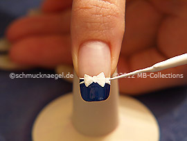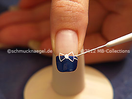 Dibuje ahora con el nail art liner a partir del punto una pajarita.