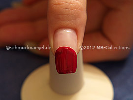 Utilice el esmalte en rojo oscuro, pinte un hemiciclo desde el borde izquierdo hasta el lado derecho de la uña.