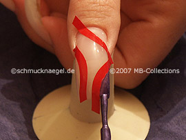 Pinte con el esmalte en naranja oscuro la superficie libre de arriba en la uña.