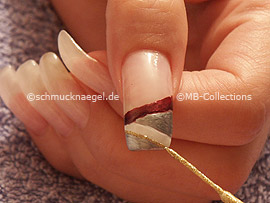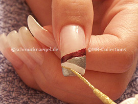 Ahora necesita el nail art liner de color oro-glitter. Dibuje en la transición del esmalte blanco una línea.
