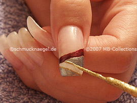 Pinte con el nail art liner de color plata la superficie libre por debajo de la línea blanca.
