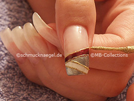 Pinte ahora con el nail art liner de color plata, la superficie libre por encima de la línea blanca.
