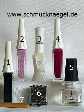 Paso 1: Nail art liner en negro, rosa y fucsia