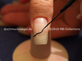 Empiece en el borde izquierdo y pinte con el nail art liner en negro dos líneas con curva, aproximadamente como en las imagenes.