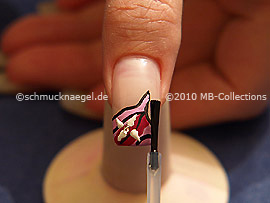 Rellene ahora con el nail art liner en rosa el lado derecho y izquierdo, como en las ilustraciónes.